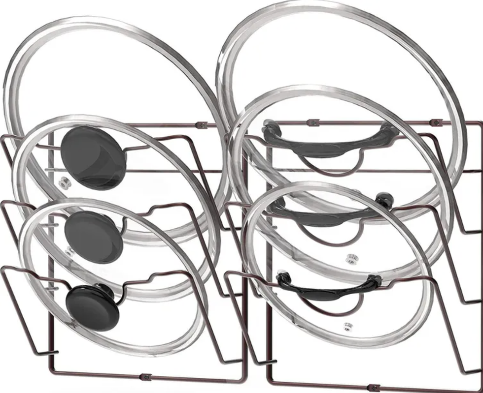 These clever lid storage racks will save you from clanging around in your cupboards every time you need a pot lid. You can mount them directly onto the inside of your cupboard door, which will free up space in your cupboard.