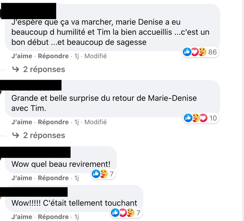 C'est d'abord le duo de Marie-Denise et Tim qui ont fait vivre une montagne russe d'émotions en début de semaine. Après l'épisode du 28 octobre, le public était persuadé que tout était fini entre l'amatrice de golf et le futur snowbird, et avec raison.