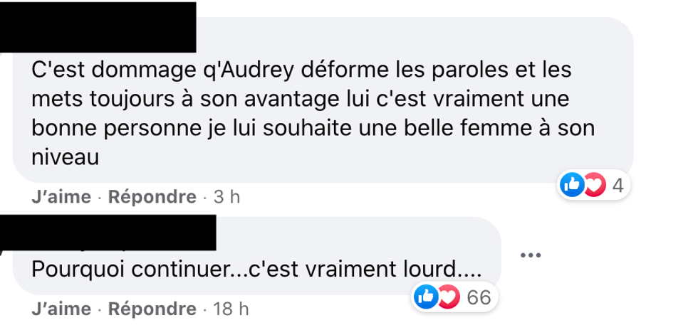 « C'est fini, fini. Pis c'est ça, il voulait pas me le dire », a expliqué Audrey à sa mère après avoir reçu un appel lui apprenant la nouvelle.