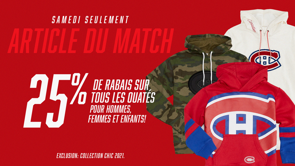 Au cas où tu aurais besoin d'une nouvelle excuse pour magasiner des articles des Canadiens, Tricoloresports.com offre des rabais exclusifs sur ses produits lors des Samedis FANatiques Molson Export.
