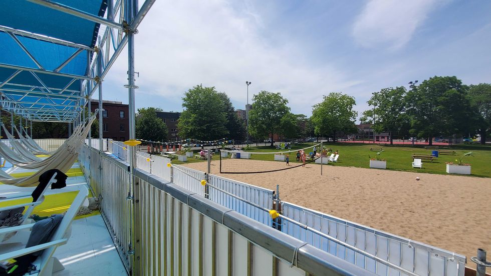 Il y a même un terrain de volleyball, pour te donner la sensation d'être à la plage, ainsi que des raquettes, des pelles et des seaux pour que les plus petit.es puissent jouer dans le sable. Si tu préfères passer la journée à lire pendant que tu te fais bronzer, sache que les bibliothèques locales ont fourni un bac avec des livres. Celles et ceux qui aiment les jeux de société pourront également en profiter gratuitement.