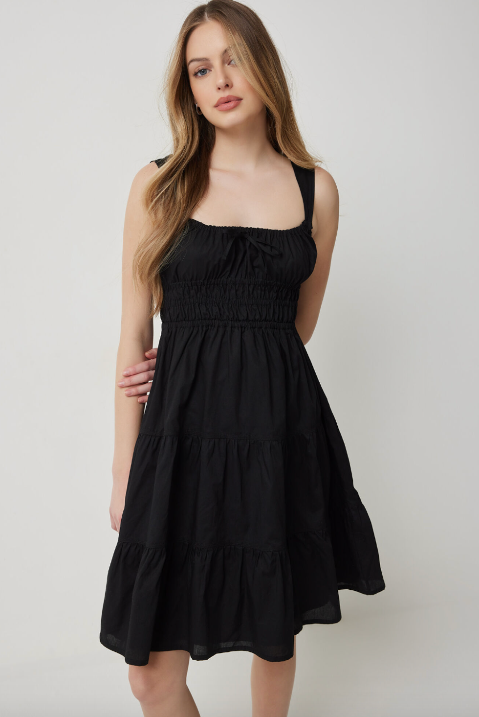 The dress, which is from Ardene, is a perfect dupe for Aritzia's Martine Poplin Midi Dress. Both dresses featured a tiered skirt, square neckline, elastic waist and front tie detail. They're also both made of 100% cotton and come in similar neutral colours.