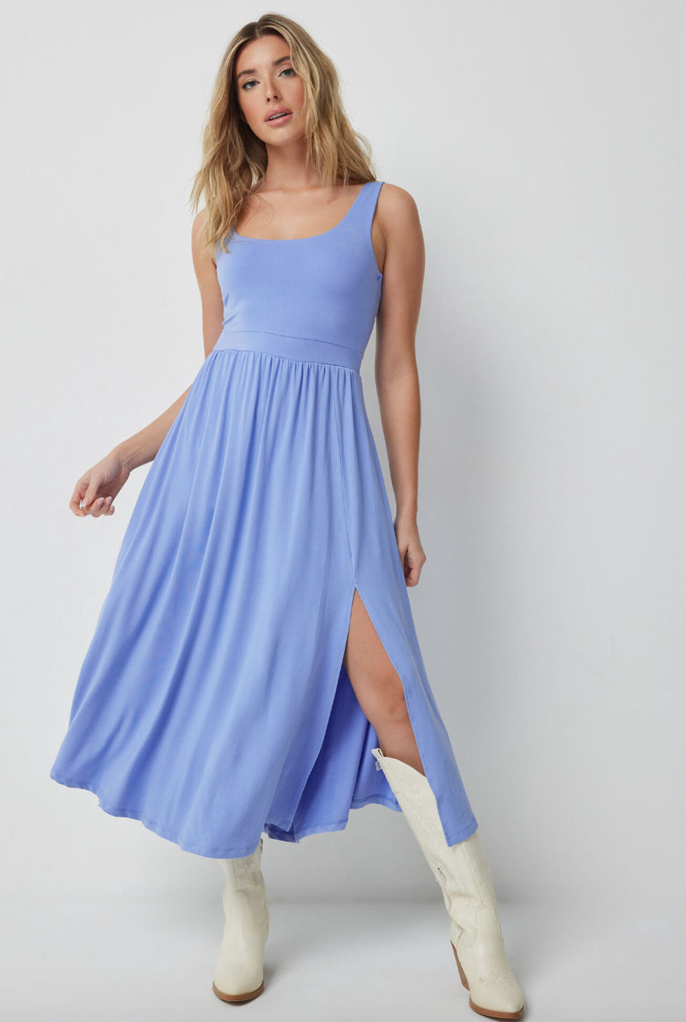 Details: This soft midi dress is a perfect dupe for Aritzia's popular Market Slit Dress and is a great piece to have on hand for the spring and summer.
