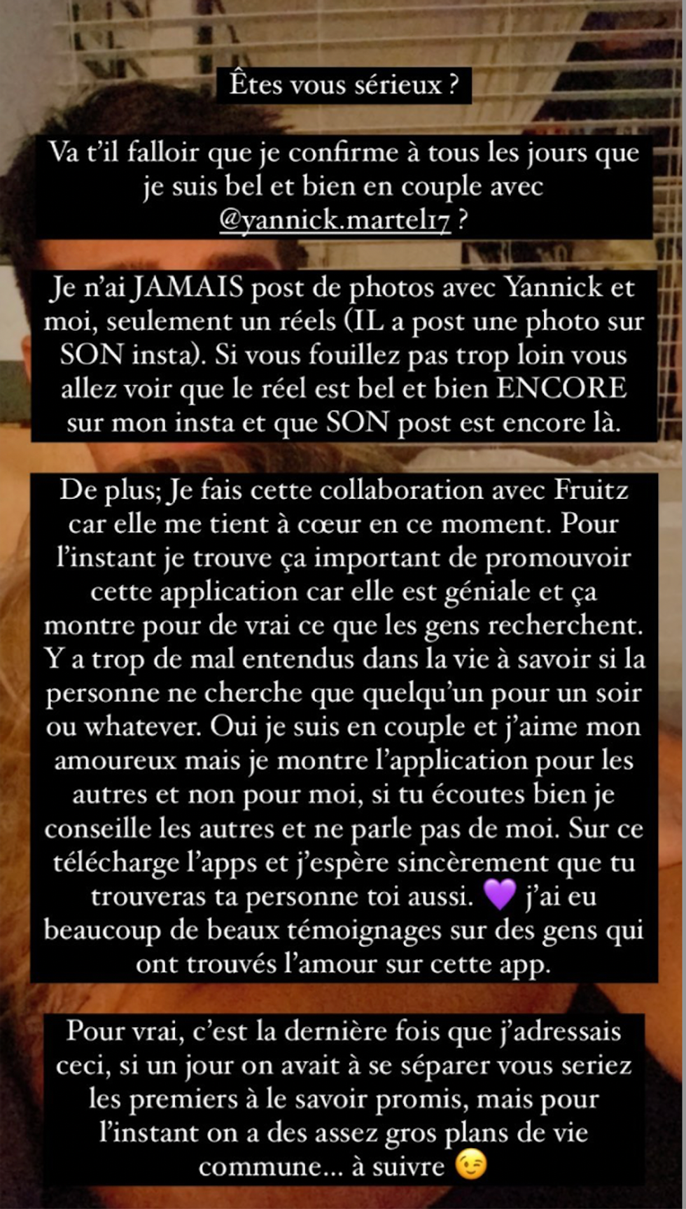 Le troisième n'a pas caché qu'il ne recherche rien de sérieux pour le moment : « J'ai mis ça parce que je sors d'une relation assez difficile et je me suis dit que je voulais essayer des trucs et découvrir avant de me relancer dans une relation à long terme, mais si je rencontre une personne formidable, tout est possible. »