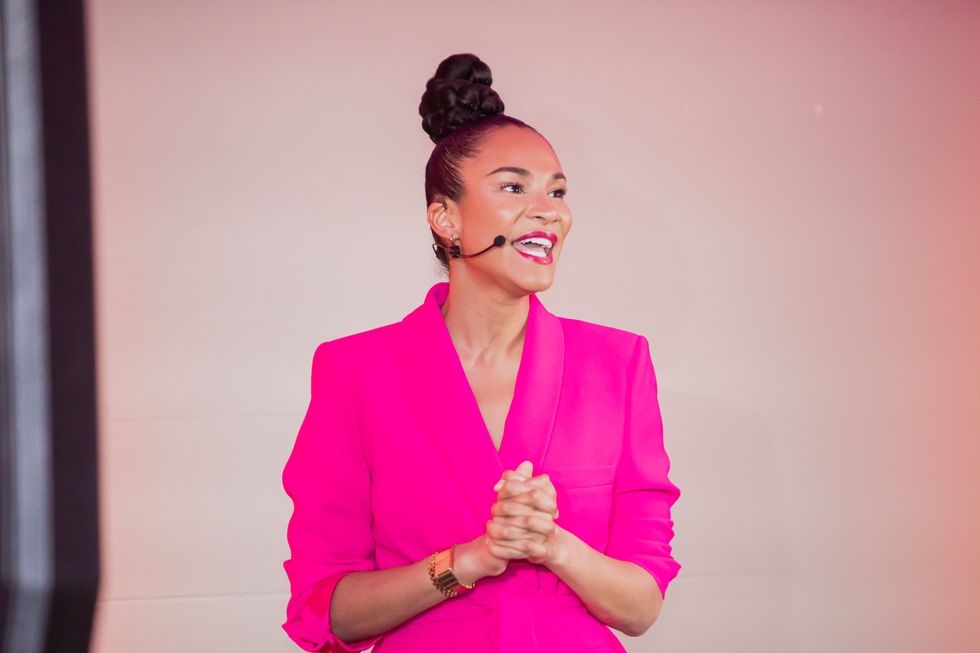 Nadeii, alors qu'elle animait la soirée culture, est venue dans un complet rose bonbon qui lui allait parfaitement bien.