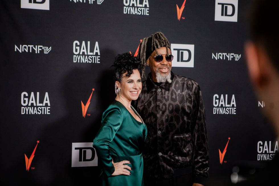 Valérie Plante, la mairesse de Montréal, a tout donné dans sa coiffure qui lui donne un style rock'n'roll avec sa robe en satin vert sapin aux côtés d'Alan Trater qui portait une chemise aux imprimés léopard avec un effet ombré.