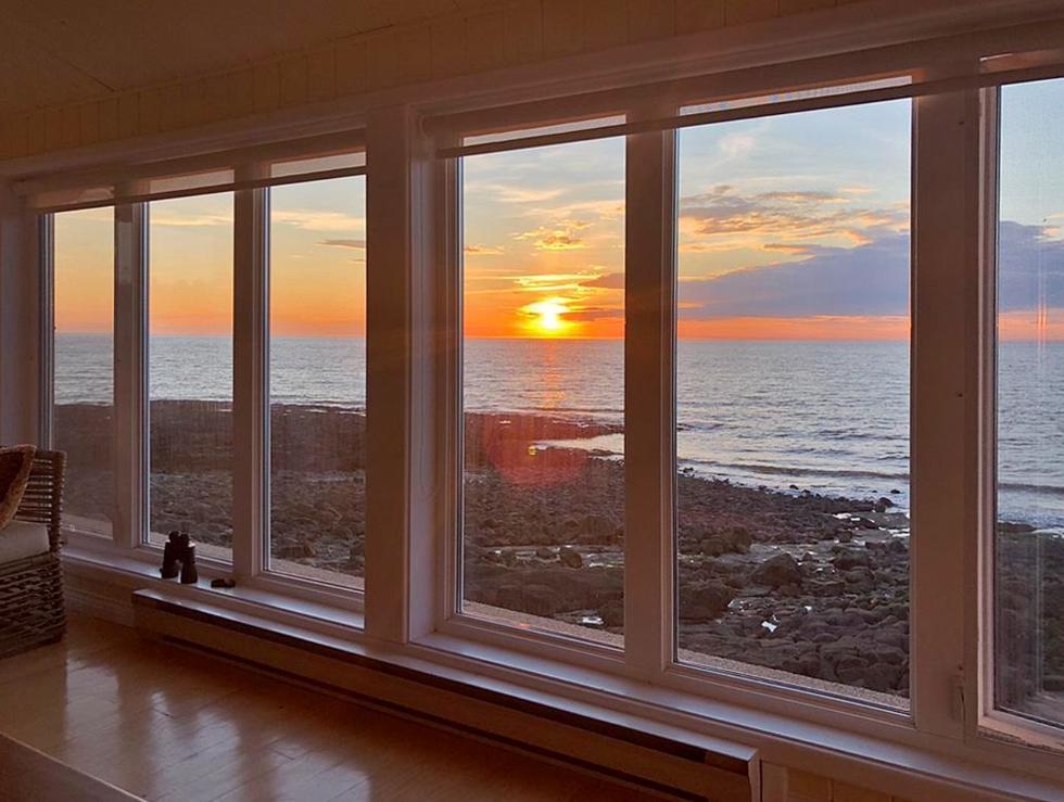 Exterior of the house for sale in Nova Scotia with ocean and lake views.
