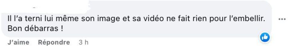 « Il l'a terni lui-même son image et sa vidéo ne fait rien pour l'embellir », s'indigne cette personne.