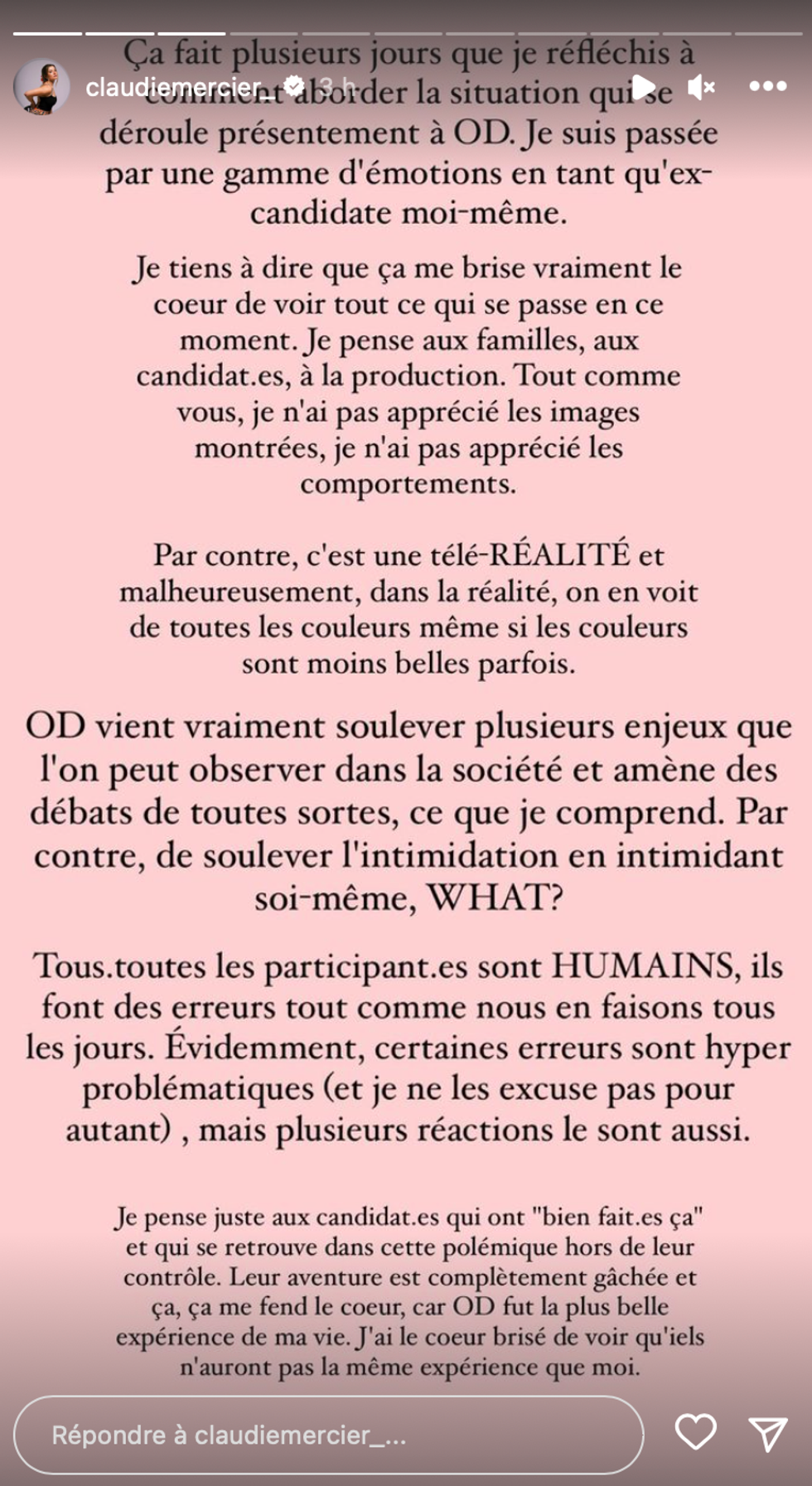 « Vous semblez ne pas avoir bien écouté Julie Snyder qui a répété plusieurs fois que OD avait commis des erreurs et elle s'en est excusée », a répliqué une internaute.