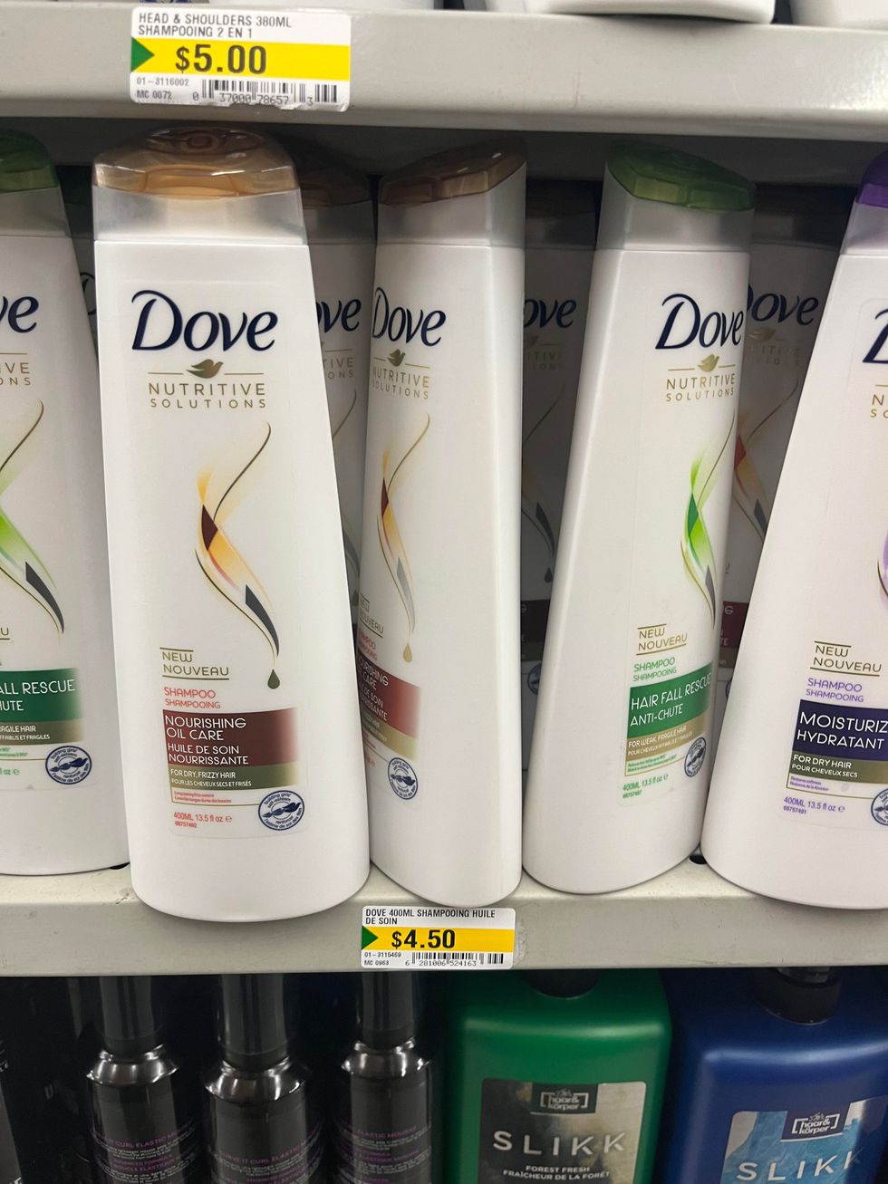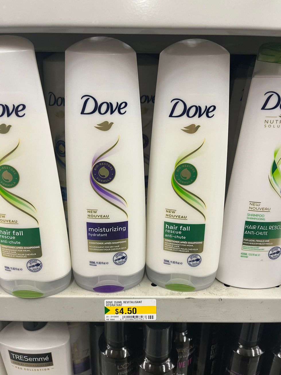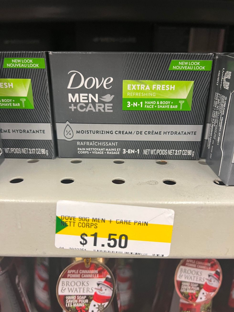 Les pains de beauté Dove, plus communément appelés des barres de savon, semblent avoir vécu la « réduflation » au Dollarama car je n'ai trouvé que des formats de 90 g par barre, en comparaison au Jean Coutu où il y avait des barres de 106 g. Cela dit, le prix par 100 g revient beaucoup plus avantageux au Dollarama.