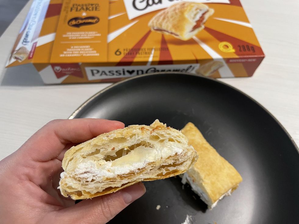 Passion Flakie, as the name suggests, is a flakey pastry filled with cream and mainly fruit. Some flavours include caramel, three fruit and apple-raspberry.