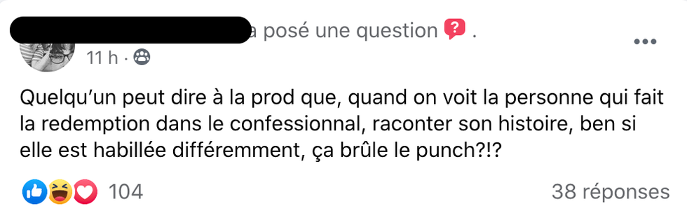 « Ce qui m'a le plus surpris en regardant les émissions — j'ai pas tout vu encore, parce que j'ai pas eu le temps de tout écouter — je dirais la qualité de l'humour de Richardson dans les confessionnaux. J’en avais aucune idée, il m'a fait vraiment rire.