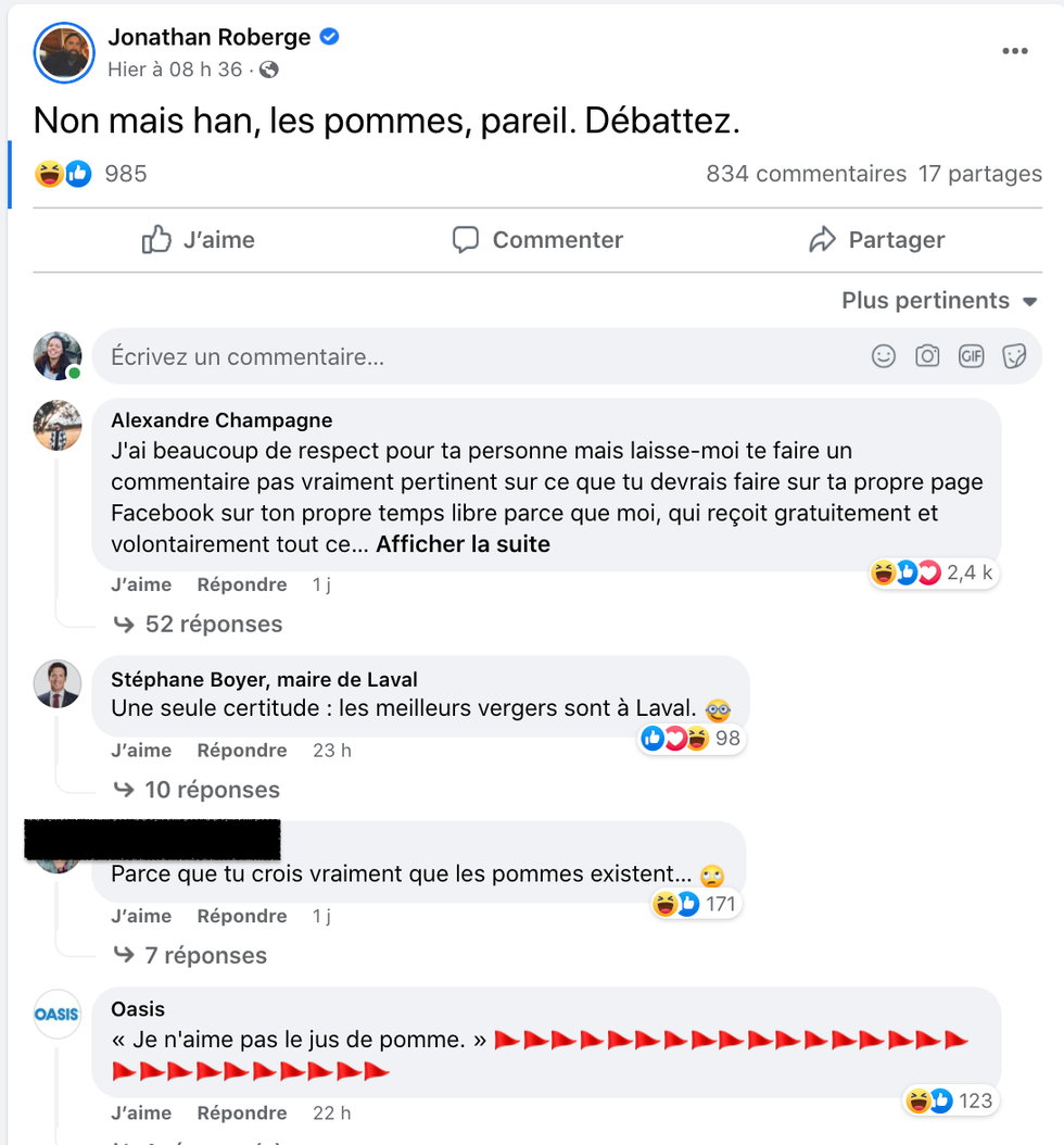 « C’est ab-so-lu-ment inacceptable. Un terrain a été déboisé illégalement dans Fabreville. Laissez-moi vous dire qu’on va prendre tous les recours juridiques possibles contre le promoteur. Il n’est certainement pas au-dessus des lois », a déclaré sur Facebook le maire de Laval.