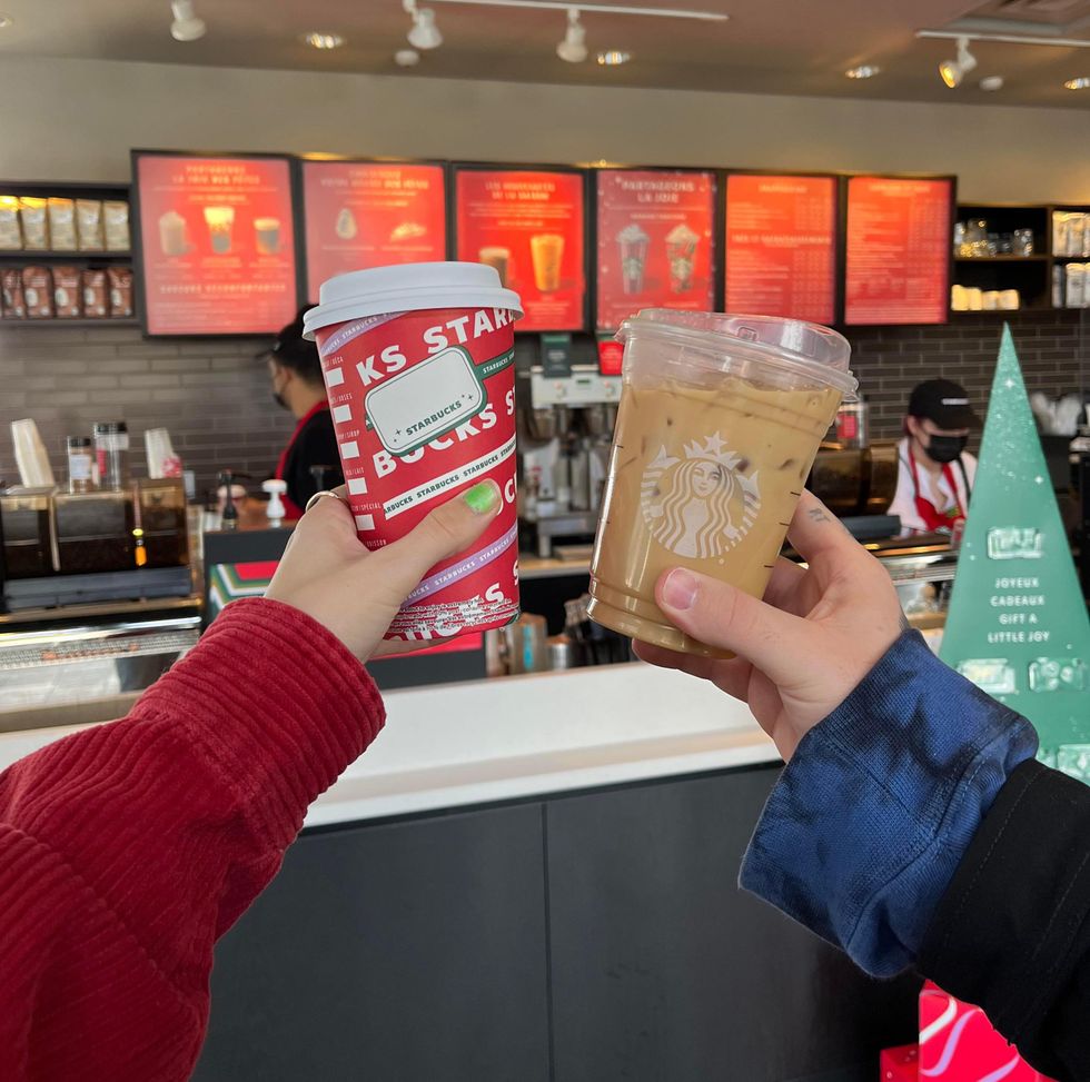 Histoire d'en essayer un nouveau ou de retrouver ton drink favori tout en recevant un petit cadeau, c'est le jeudi 18 novembre que tu pourras obtenir le gobelet de plastique rouge et orné de rubans blancs sans frais, lorsque tu te procures une boisson.