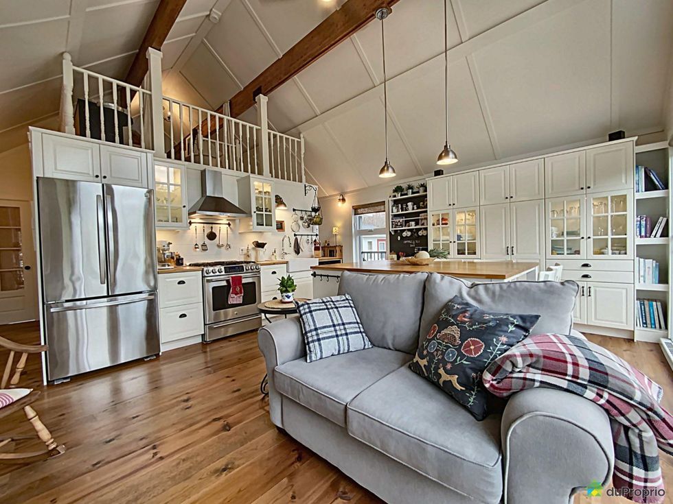 Cuisine et salon du Airbnb Le Hygge à Lac-Beauport.Airbnb