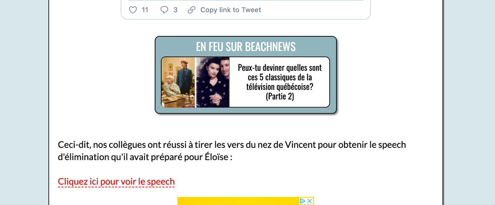 « La réécriture qui crédite les autres sites, c'est la réalité des nouveaux médias. Notre modèle est inspiré de Barstool. On paye ce que la concurrence paye environ pour ce genre de truc. (...) Il n'y a personne qui paye 80 $ pour un article du genre dans l'industrie. Mais fait moi un article recherché sur Beachnews, je vais te le payer ton 80 $, mais c'est pas ça notre média, c'est pas des articles de recherche qu'on publie.