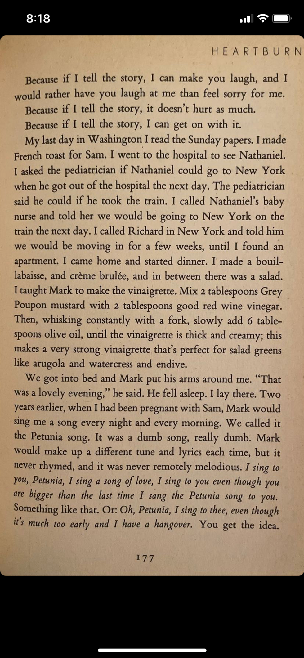 The story shared a page from a book which included a recipe for a vinaigrette "perfect for salad greens like arugula and watercress and endive."