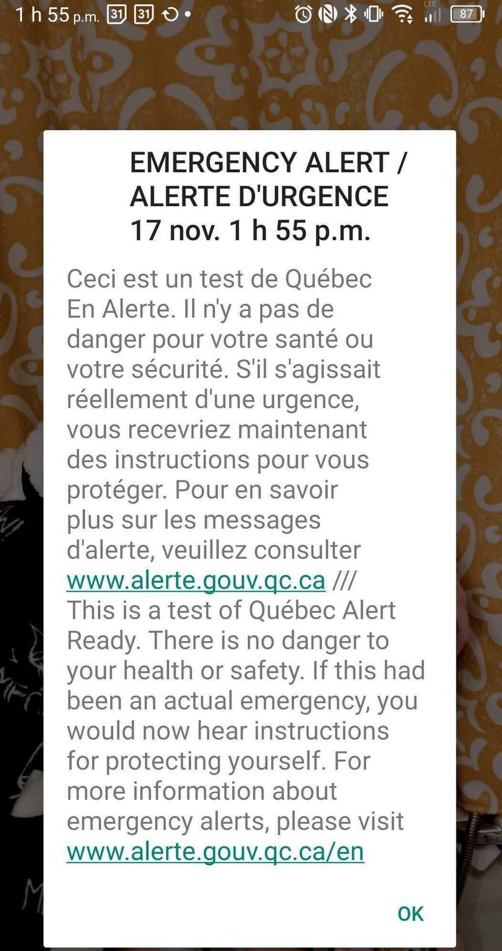 Afin de t'éviter de sursauter, tu peux noter qu'une alerte va retentir sur ton téléphone le 15 novembre 2023 en début d'après-midi. En effet, le ministère de la Sécurité publique (MSP) procédera à un test de Québec En Alerte, dans le but de permettre aux radiodiffuseurs et aux compagnies de télécommunications de vérifier le bon fonctionnement du système. Si tu te poses la question, oui, c'est le bruit assourdissant qui retentit notamment lors d'une alerte AMBER ou un avertissement urgent de feux de forêt.
