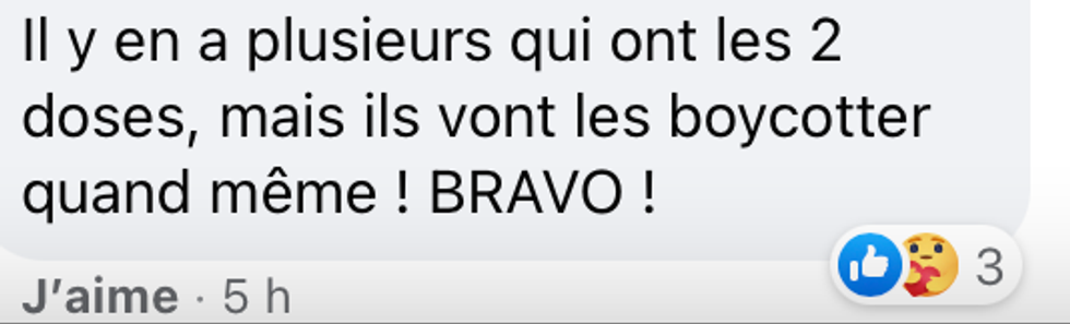 Toujours en réponse au même tweet, une personne visiblement irritée de la demande d'Hydro-Québec de réduire son utilisation d'énergie dit qu'elle a décidé de ne pas prendre de douche pendant la semaine « pour écouter les bons services de l'État » et que ses collègues doivent subir « sa puanteur ».