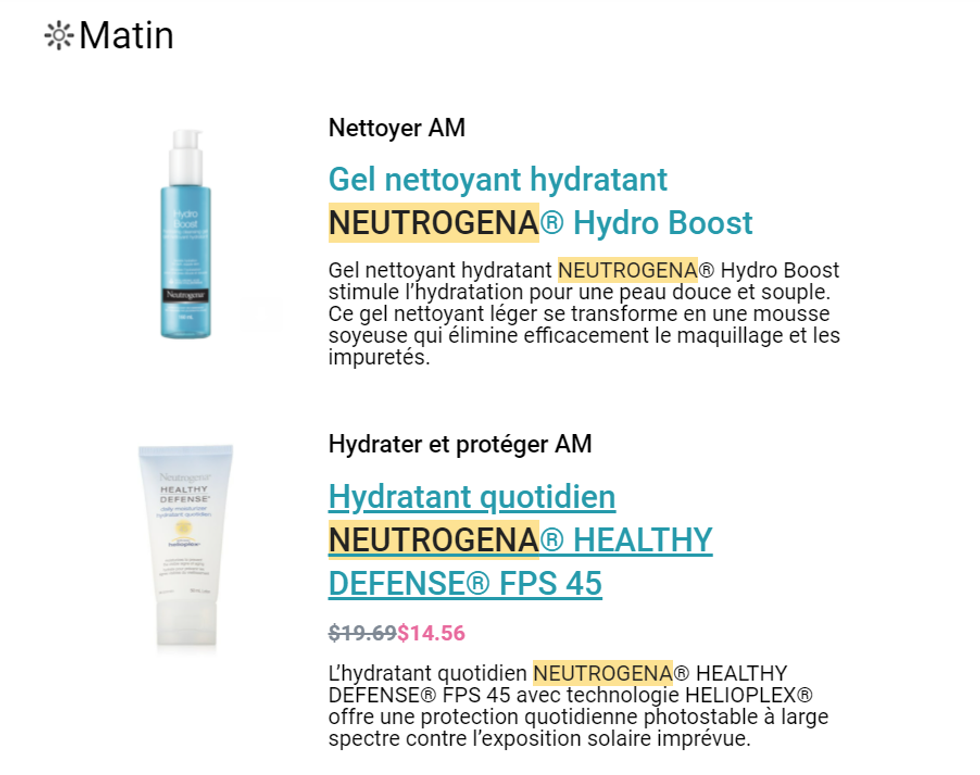 Lorsqu'il s'agit de ta peau, tu n'as pas besoin d'avoir deux gammes de produits complètes pour séparer ta routine du matin et du soir, selon Fanny. Parfois, tu peux utiliser les mêmes produits, que tu peux te procurer en pharmacie. Ce n'est pas parce qu'une crème ou un sérum coûte une centaine de dollars qu'ils sont nécessairement bons. Des marques abordables peuvent donner d'excellents résultats.