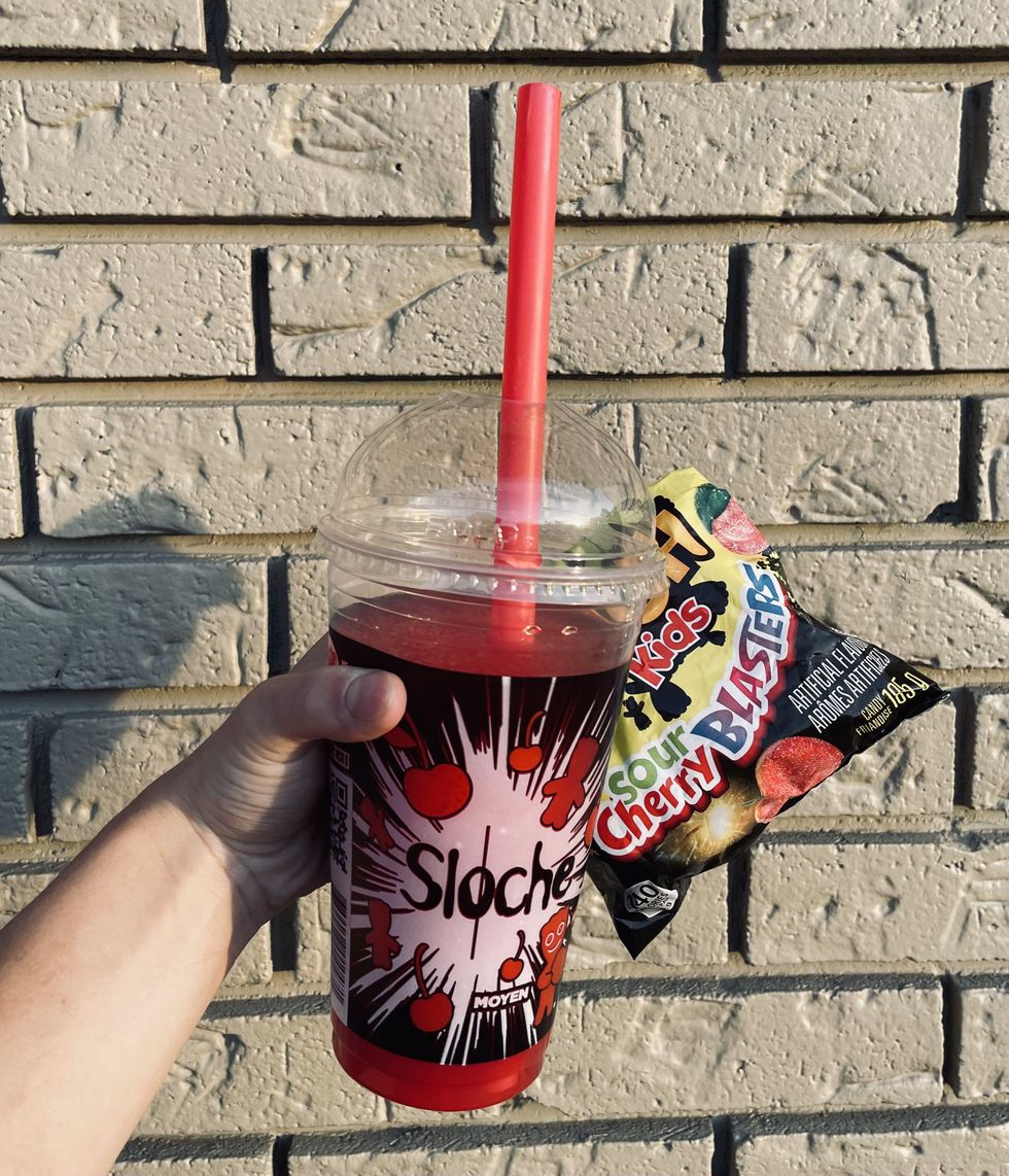 Disponible au Québec dans tous les Couche-Tard participants, la Sloche Sour Patch Kids, Sour Cherry Blasters devrait te rappeller tes souvenirs d'enfance.