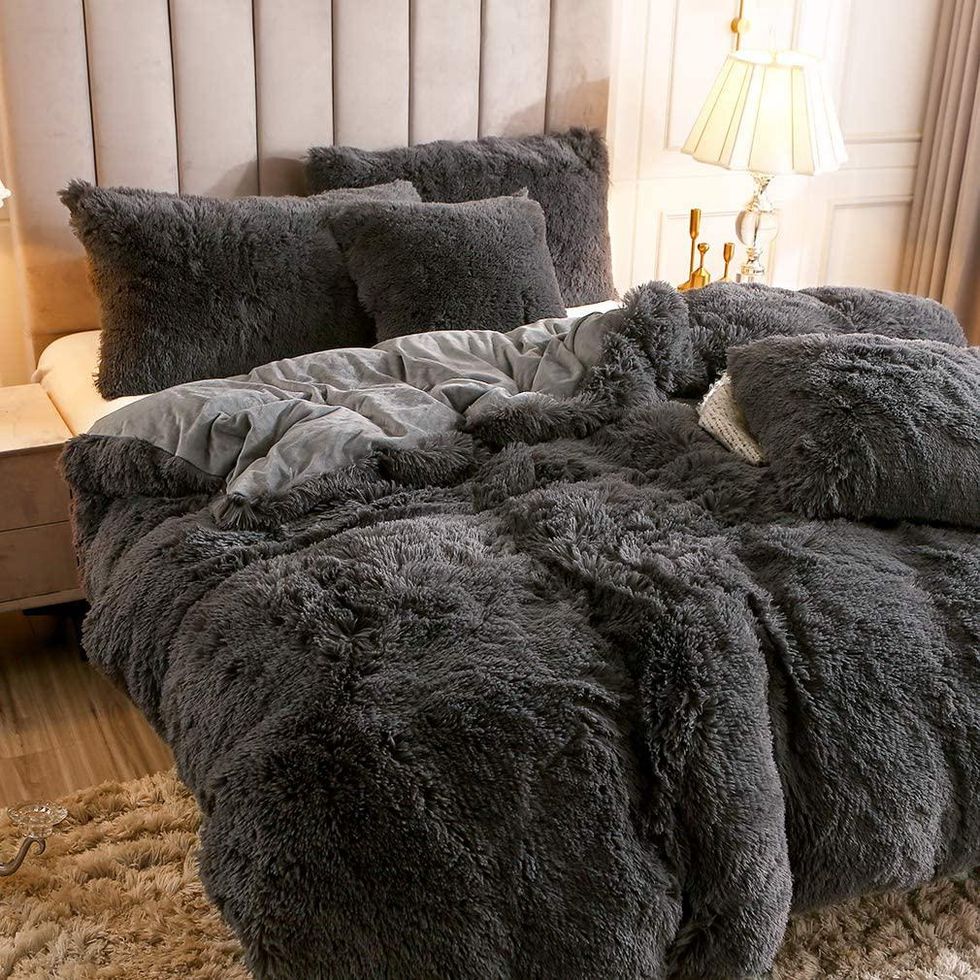 Faux Fur Velvet Fluffy Bedding Duvet Cover with Pillow Shams