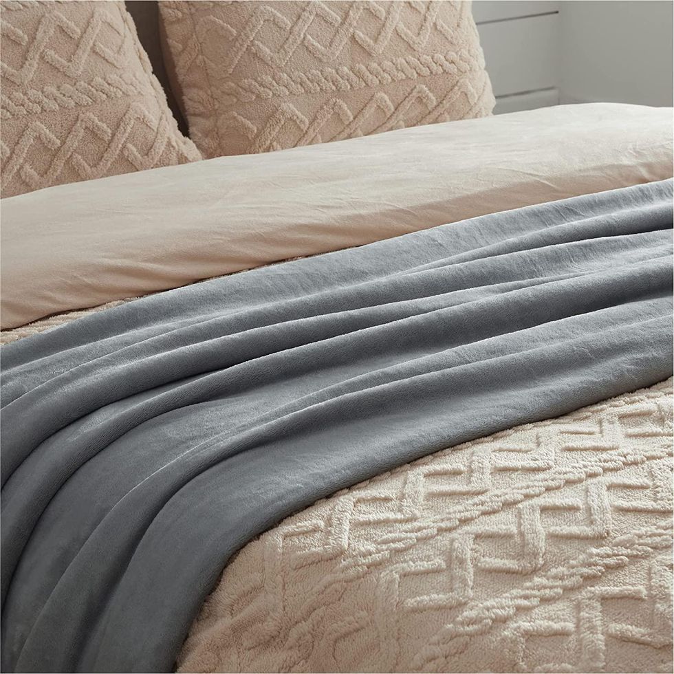 Flannel Fleece Queen Blanket Taupe Grey Blanket