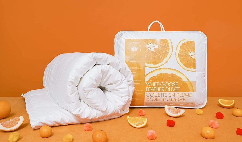 Now that it's winter, you can swap out your thinner blankets for a thick duvet filled with goose down. Shoppers love how evenly it puffs up and many approve it for Canadian winters.