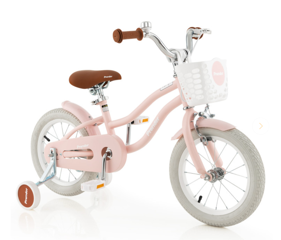 The perfect beginner's bike for children aged 3 to 8, where style meets safety. It features a dual brake system (hand and coaster brakes) and a fully enclosed chain guard for maximum protection. The bike grows with your child, thanks to an adjustable handlebar and seat, and includes a basket for extra storage. Available in multiple sizes (14, 16, and 18 inches), it boasts wear-resistant pneumatic tires, a sturdy carbon steel frame, removable training wheels, and a comfy PP-covered seat, ensuring a safe and enjoyable ride for years to come!