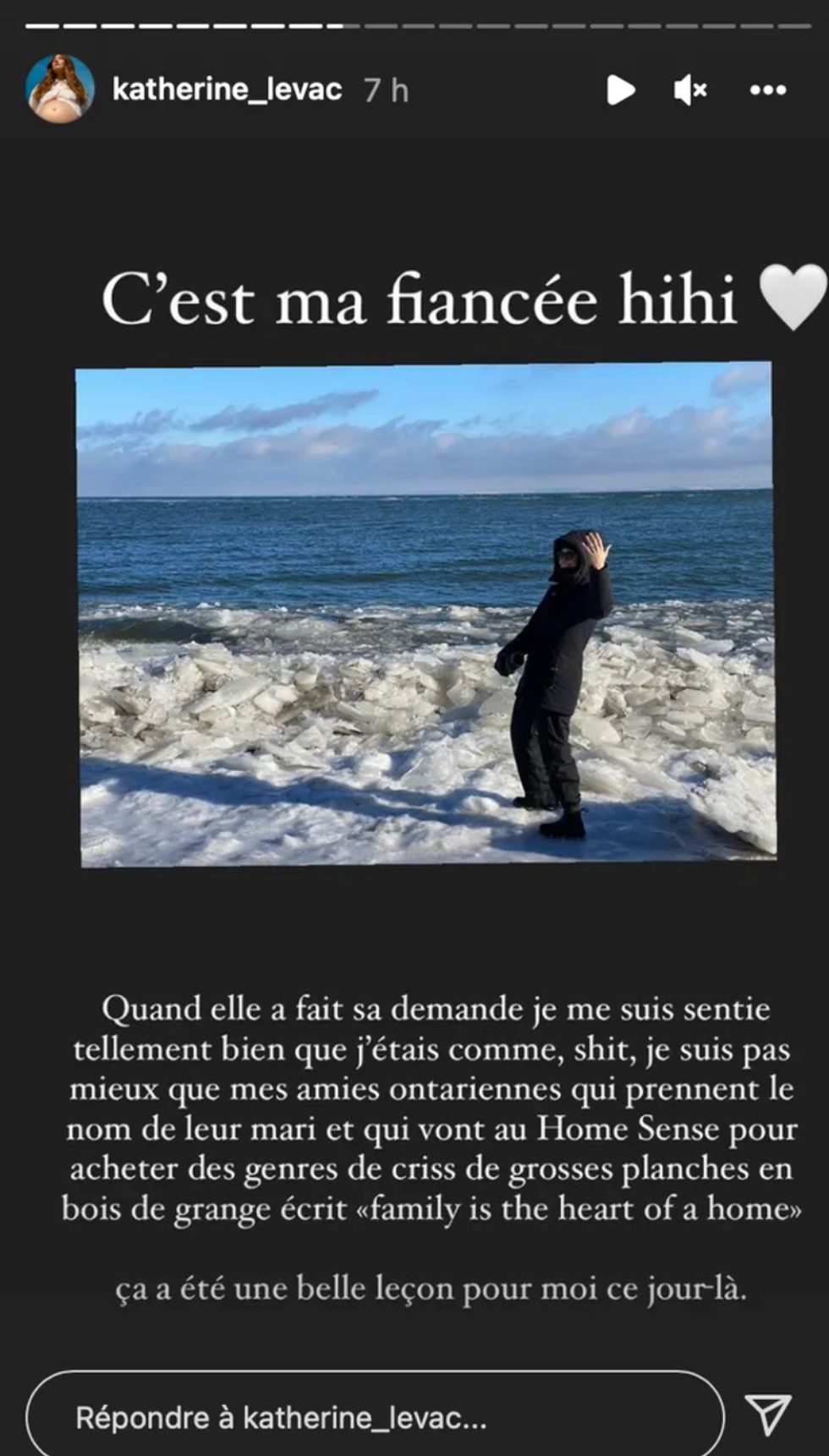 « Dans le fond, je ne pouvais pas me lever, si je voulais aller aux toilettes, je devais marcher à quatre pattes jusque dans les toilettes, il me regardait. Il était tout le temps là durant tout le temps que je suis restée là-bas pendant le un mois et demi. Je devais dormir à terre pis je me faisais réveiller à coups de pied, [...] il me crachait aussi dessus des fois. [...] Je mangeais une fois par jour je te dirais [...] lui, il mangeait dans ma face. [...] J'étais quasiment comme un cahier à colorier parce que les bleus, il y en avait des vieux, il y en avait des nouveaux. »
