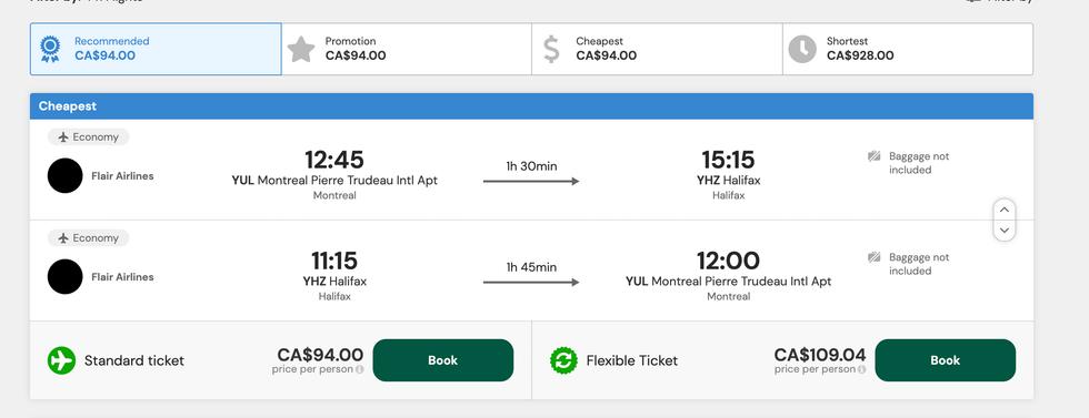 Capture d'écran vols Montréal-Paris sur Google Flights.