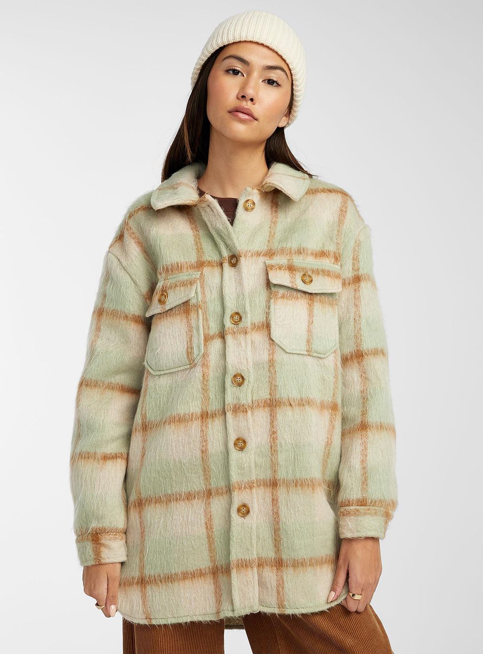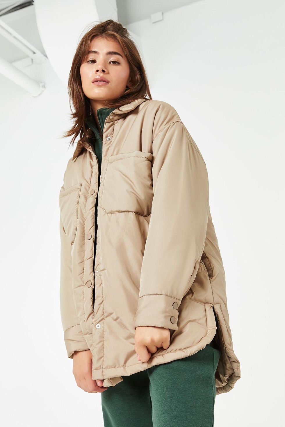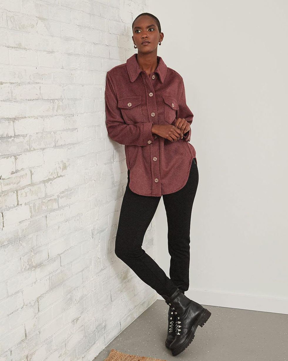 This stylish nylon shirt jacket is lined with fleece, which can be worn under your winter jacket for extra warmth or on its own when the weather warms up a little. It comes in three colours and is available in sizes XS to 2XL.