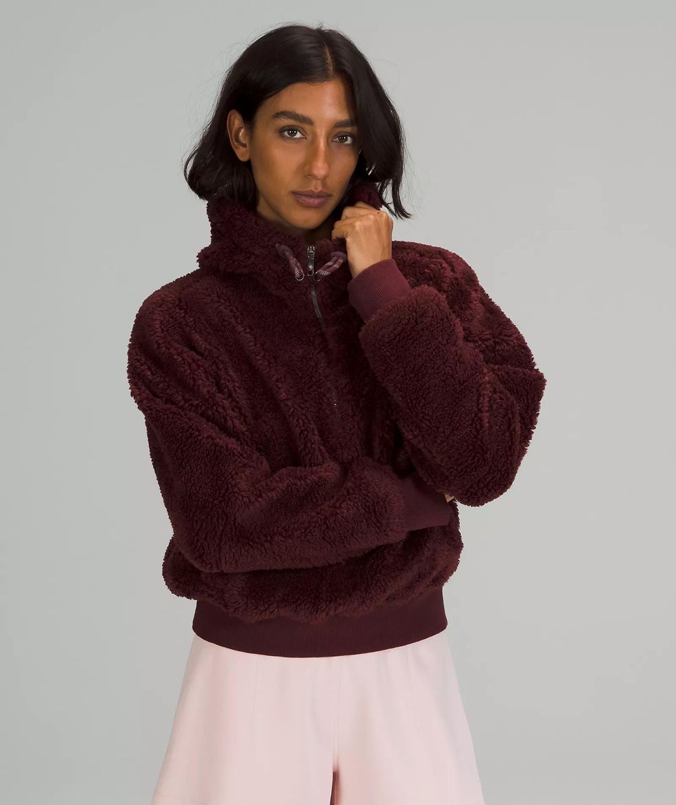 Cozy Sherpa Half-Zip Pullover Sweater For Women