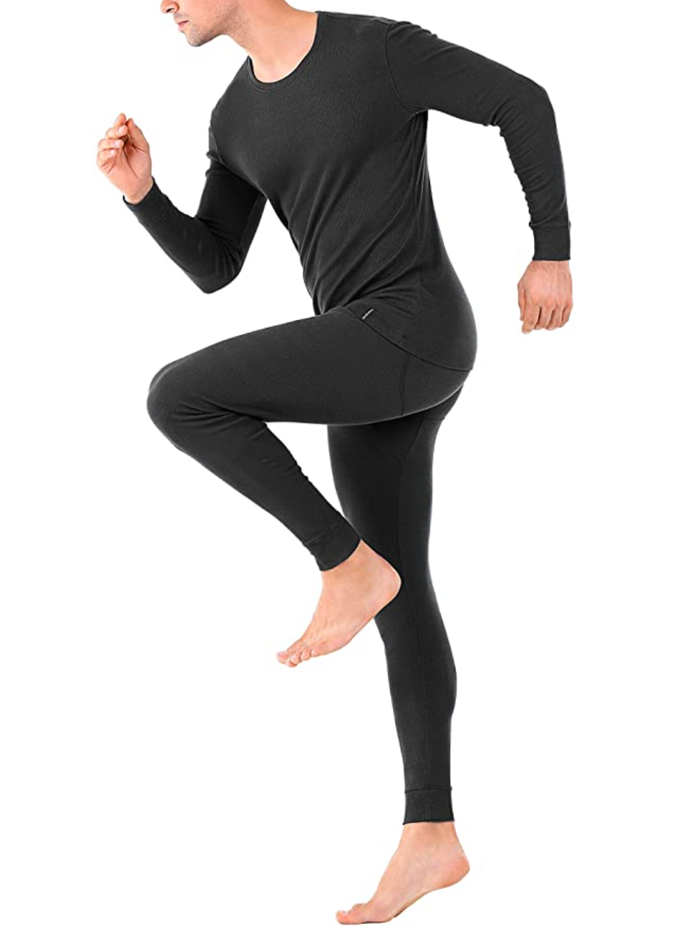 This thermal set comes with a top and bottoms that are sweat-wicking and lined with fleece for extra warmth. They make great base layers for outdoor winter activities, but can also be worn on their own. They're available in sizes small to XL.