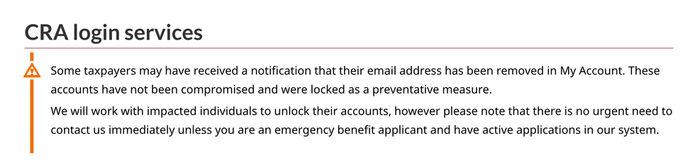 In an email sent to Narcity, the CRA explained that roughly 800,000 people will be blocked from their accounts as a safety precaution.