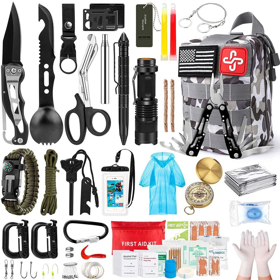 Kits you can find include the Two Person Deluxe Earthquake Preparedness Emergency Kit for $219.99 and the much cheaper Military Approved Emergency Survival Gear Kit (pictured above) for $89.92. It comes with 210 pieces of all sorts of first aid and tactical tools to help you get out of any situation.