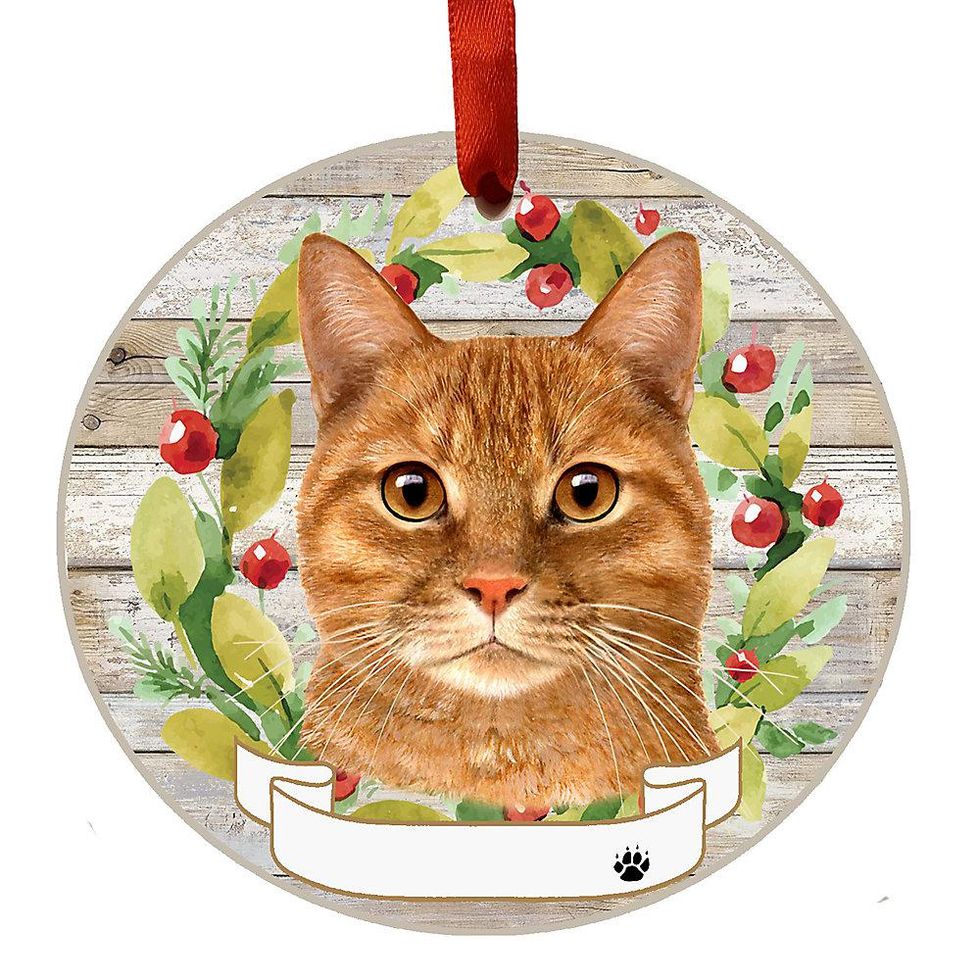 E&S Pets Personalized Orange Tabby Cat Ceramic Holiday Ornament