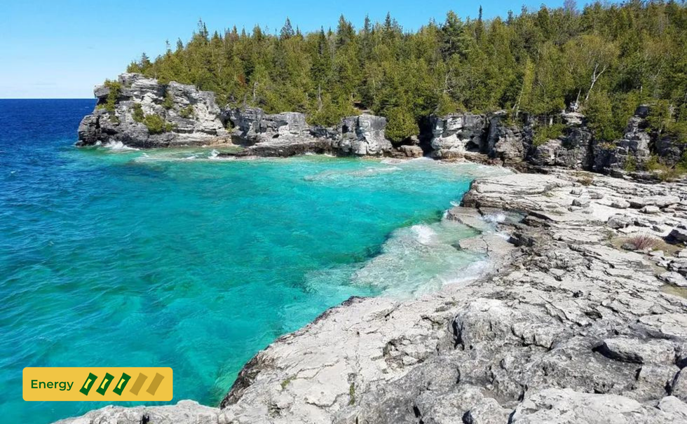 There's also plenty to do in and around the area, like exploring the charming town of Tobermory. And, if you're searching for a new perspective, there's a 65-foot lookout tower with views of Georgian Bay.