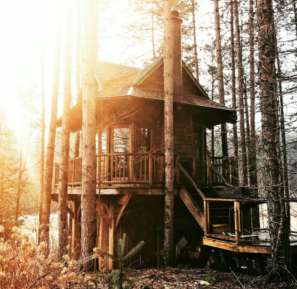 Why You Need To Go: You can spend your vacation in the treetops at this unique Airbnb. The treehouse is surrounded by serene nature and has a gazebo, several swimming ponds, and more.