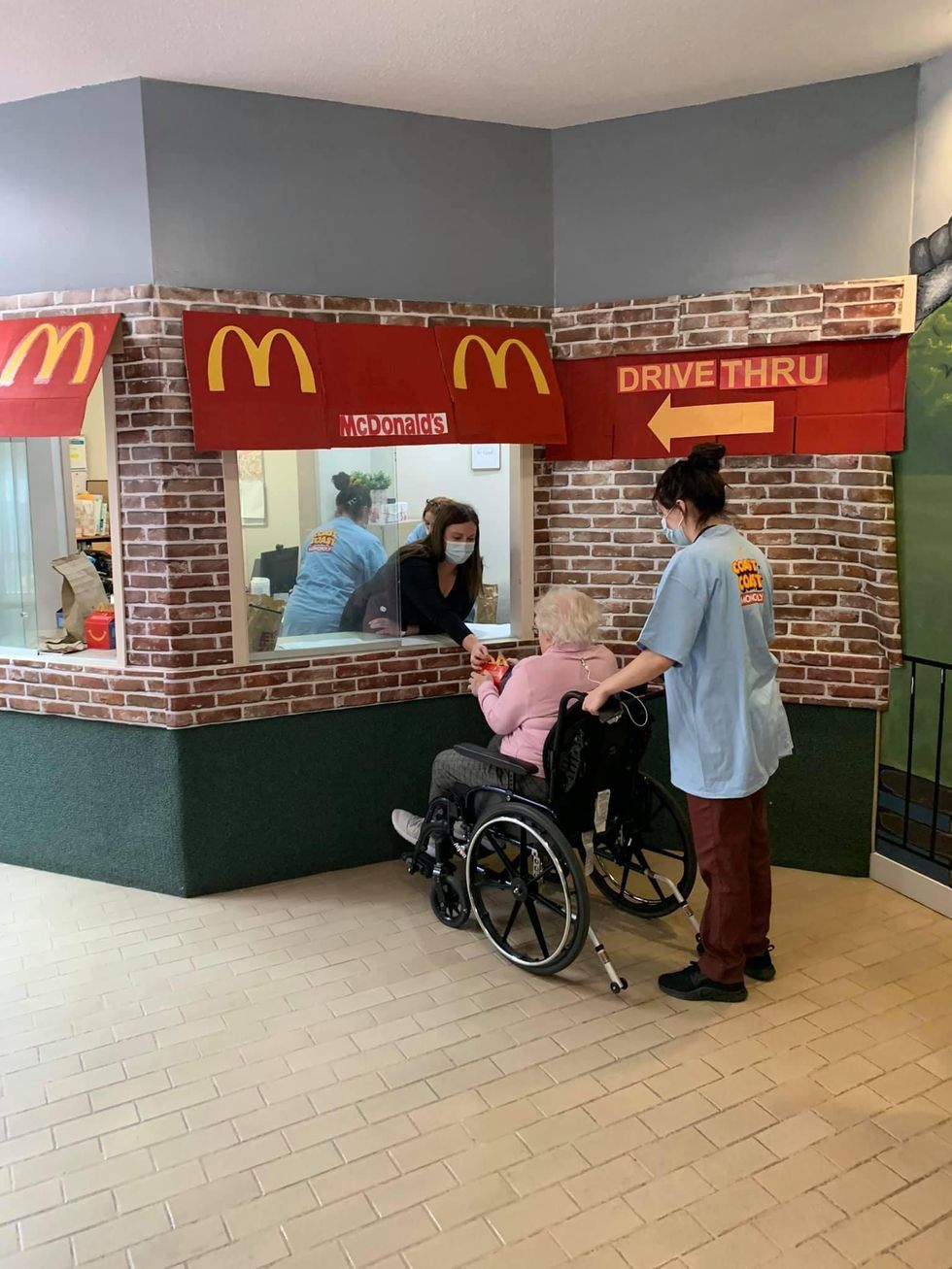 Before the provincially mandated lockdowns and social distancing protocols, residents regularly went for bus trips to restaurants. The team at H.J. McFarland Memorial Home found a way to continue this tradition safely by setting up a drive-thru experience right at the home.