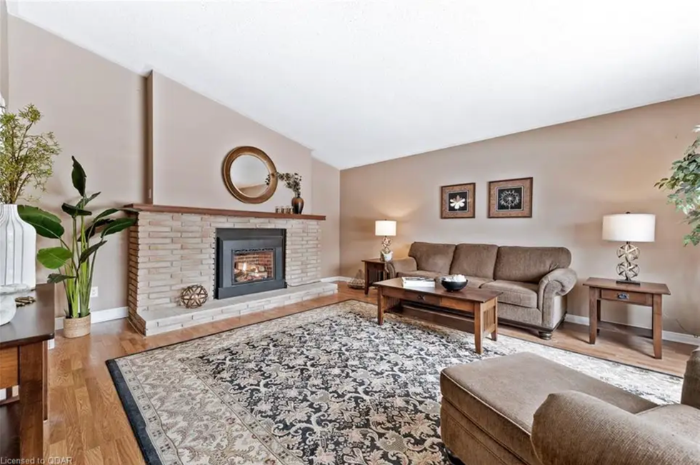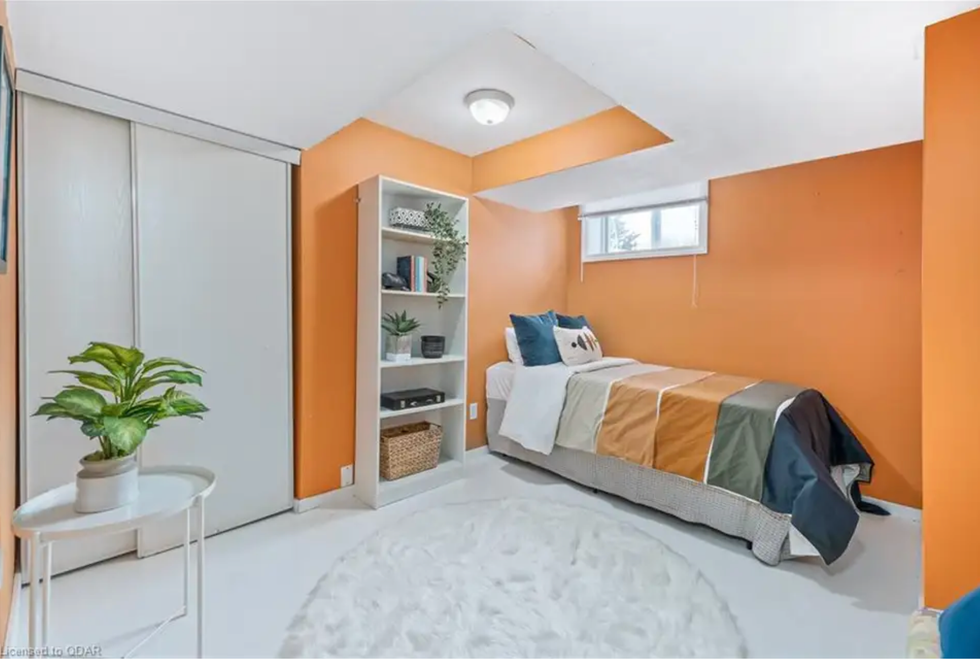 The spacious living room has a fireplace and large window that lets in lots of light.The finished basement features a bedroom, gas stove, and bar area, making it the perfect place to relax for a cozy night in or hangout with friends.
