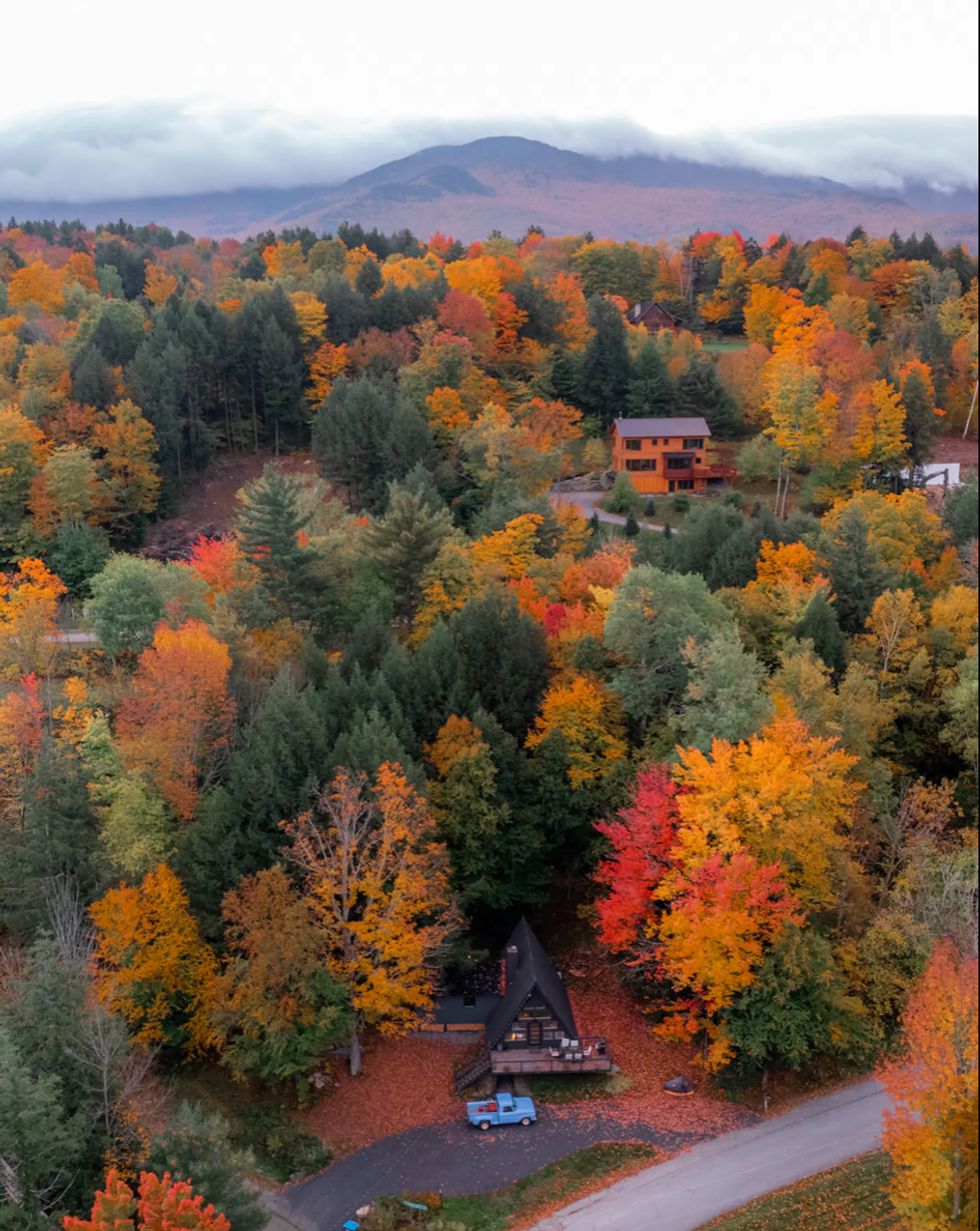 This stunning Airbnb is so cozy, it might just win fall. Nestled amongst the trees in Stowe, Vermont, this A-frame cabin is about a 4-hour drive from Ottawa, and it's a dreamy place for a vacation.