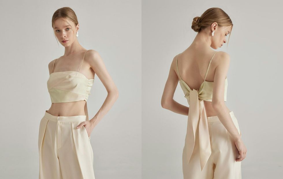 Details: This beautiful cropped top is a perfect statement piece with so many thoughtful details. The top has a layered design and comes with adjustable straps and ribbons you can tie in the back.