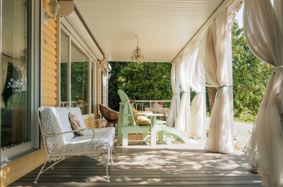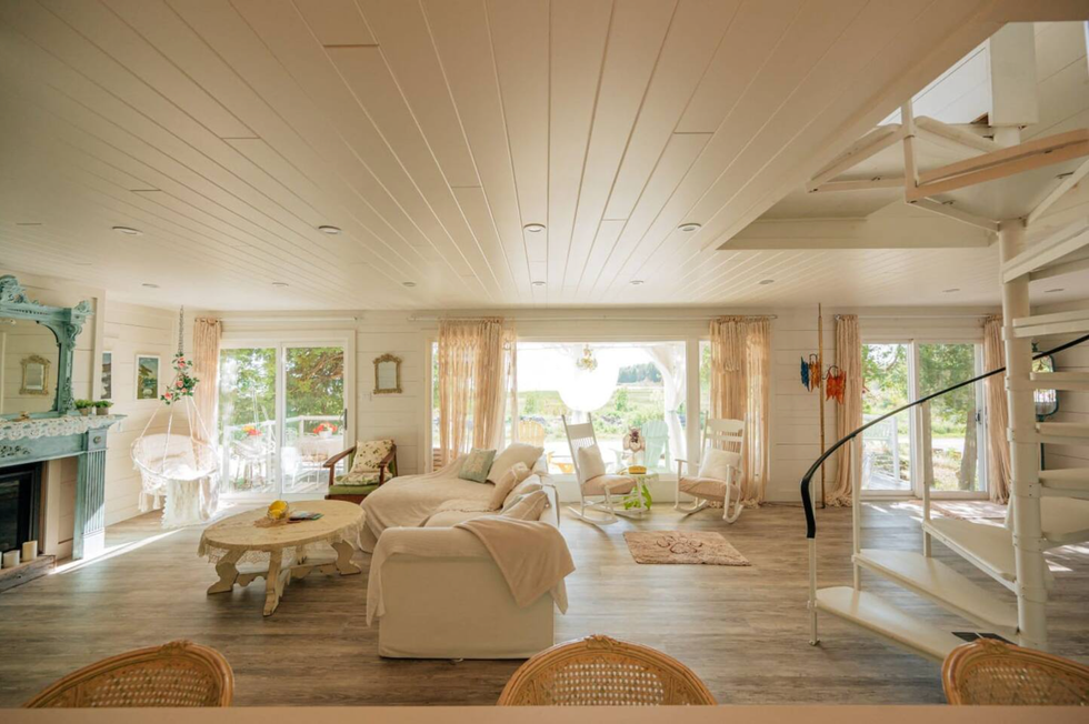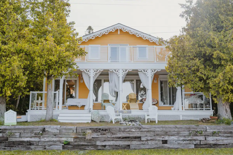 The whimsical spot is right next to Lake Huron and boasts sunset views from the covered porch.