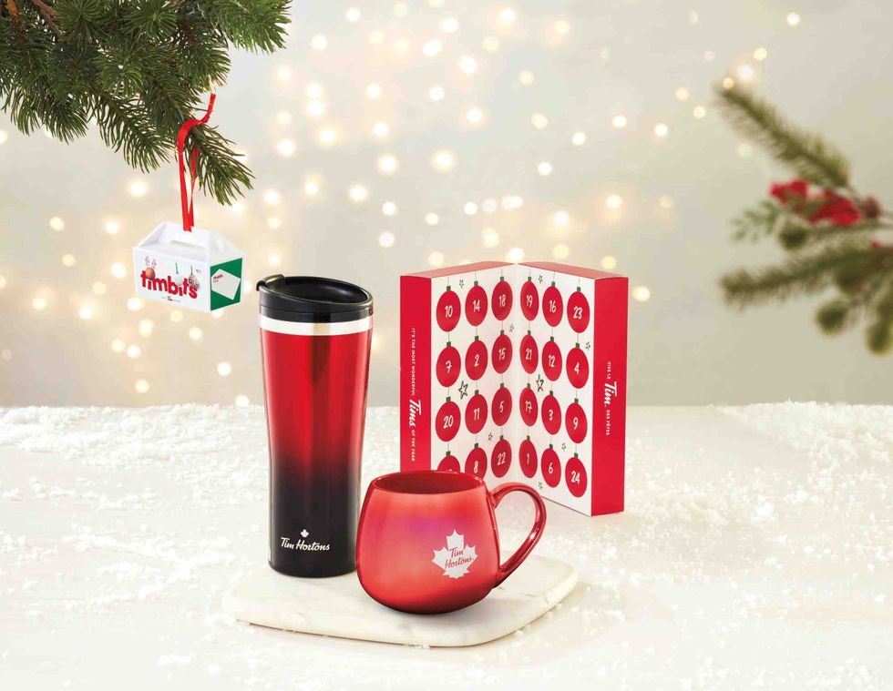 In addition to delicious treats, the company has some great gift options, including mugs and a Timbit box tree ornament.