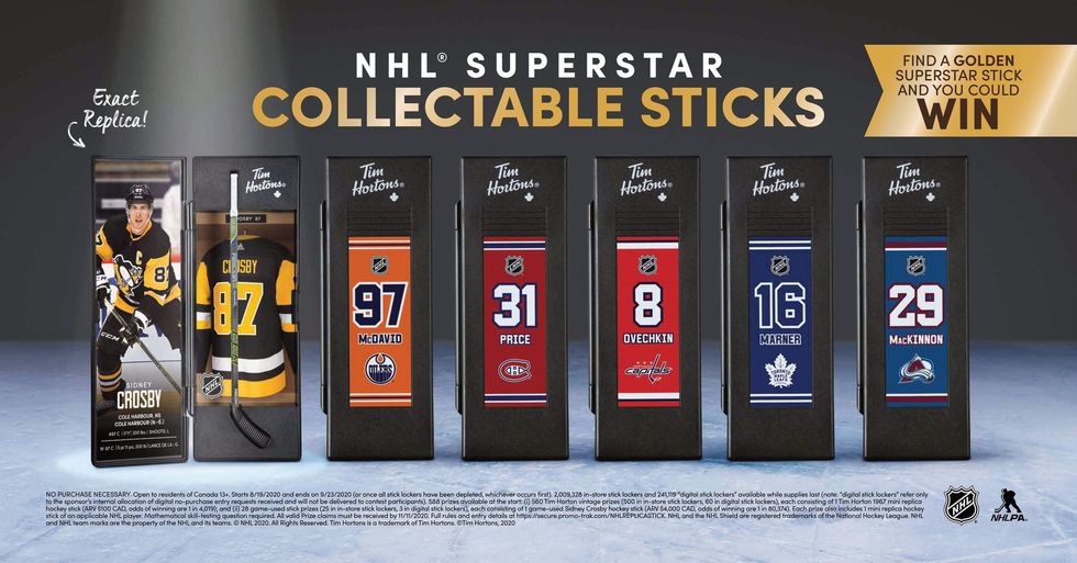 When available, both will be decked out in hockey gear and come with a jersey that has Tim Hortons written on it, a helmet and a stick.