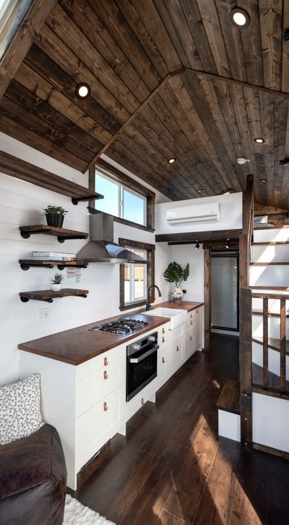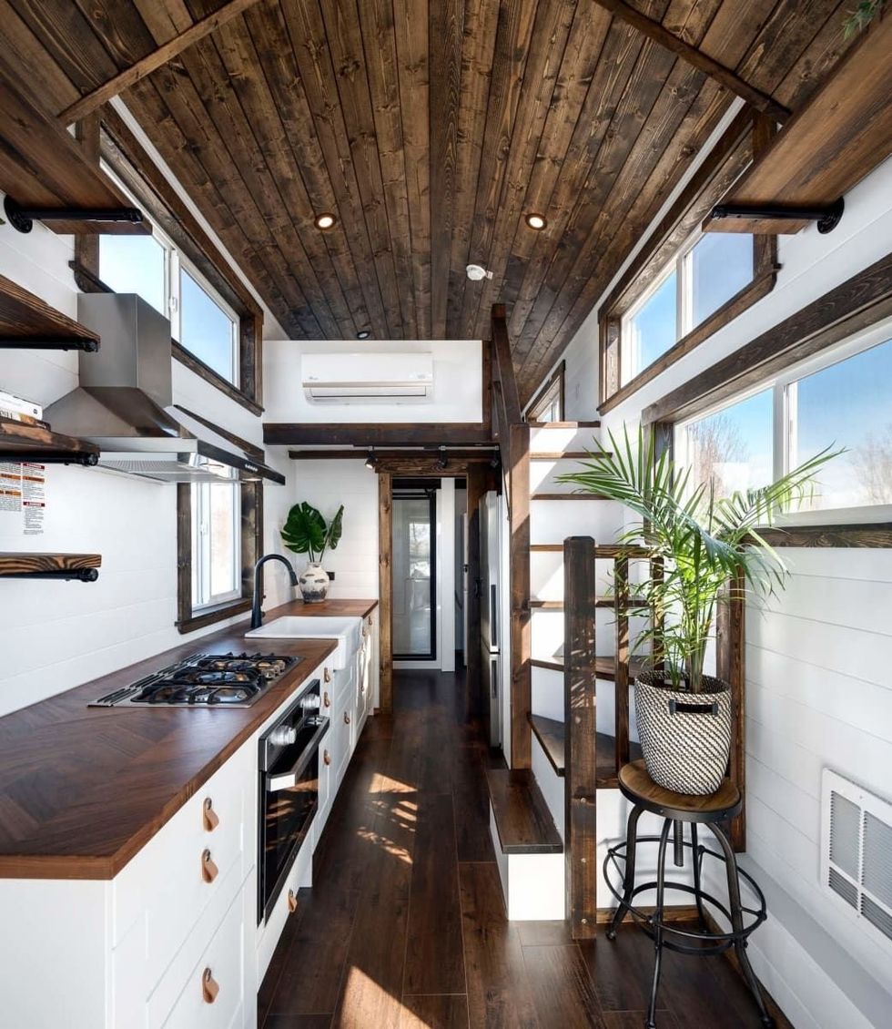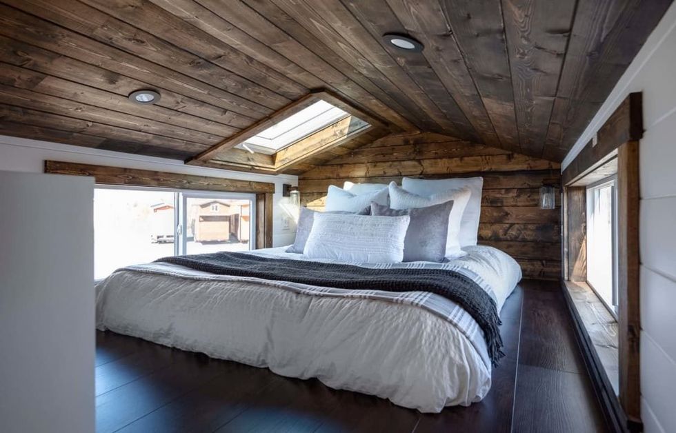 Within the 176 square feet, there is adequate room for a chic living area, a fully-functional kitchen and bathroom, and an upstairs loft bedroom.