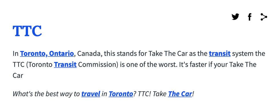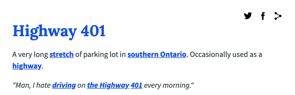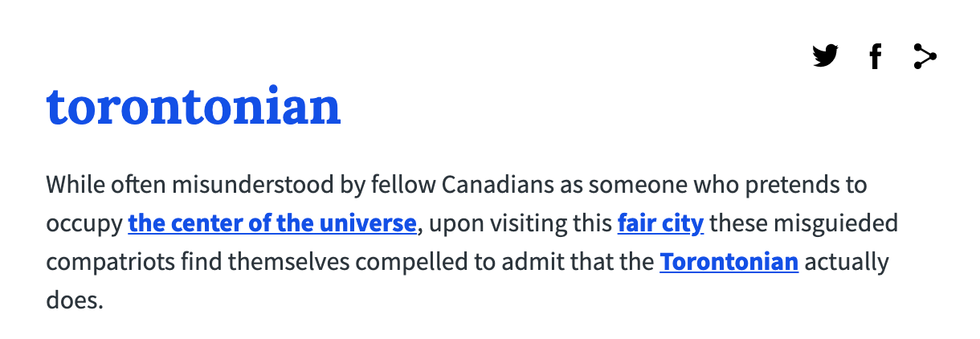 These newly defined words aren't typically for the faint of heart (because usually they're filled to the brim with sass!). Naturally, we had to see what Urban Dictionary was saying about some of the most iconic things to the 6ix and Ontario. Whether it be a famous Ontario icon or landmark, some of the definitions really don't hold back.