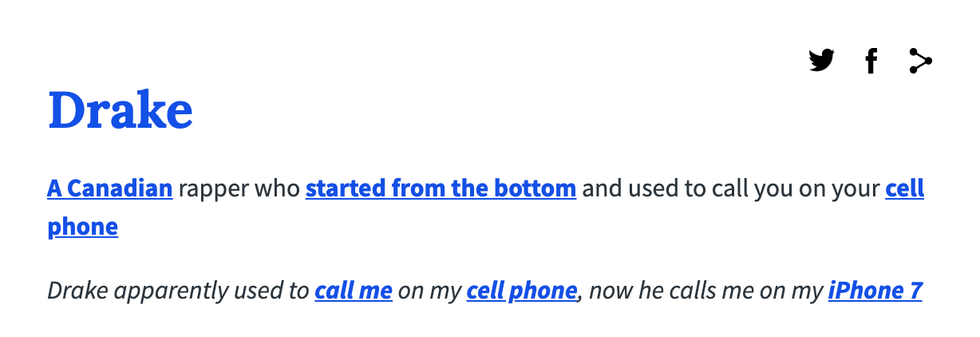 This definition is filled with references to some of Drake's biggest tunes, though we don't really see the difference between a cell phone or an iPhone 7.