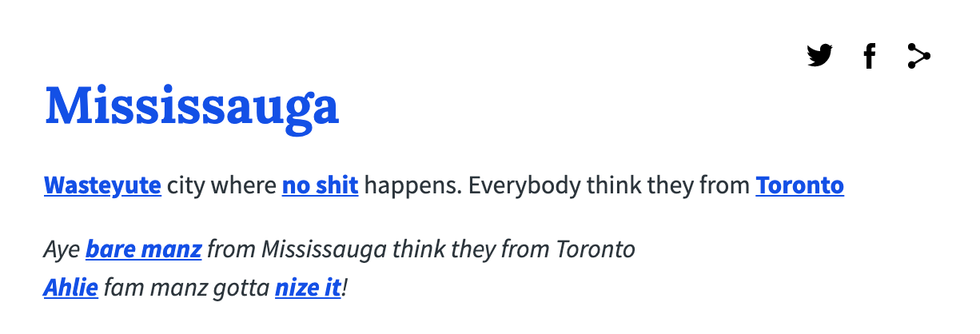 Urban Dictionary came for those who live in 'Sauga, but there's some truth to this one because Mississauga isn't actually in Toronto but rather in the GTA.